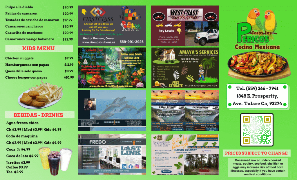 • High Visibility – Every menu goes home with a customer, staying on fridges and kitchen counters for weeks.